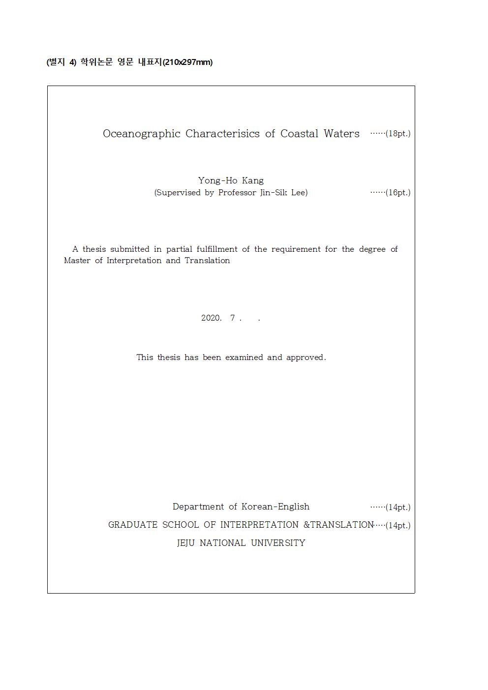 통역번역대학원 학위논문 규격 및 표지