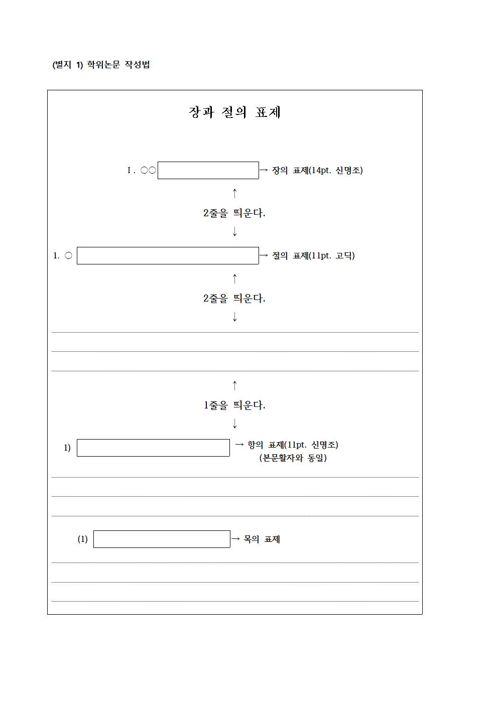- 논문내용 기재순서 : 국문(외국어)초록, 목차, 서론, 본론, 결론, 참고문헌, 외국어(국문)초록